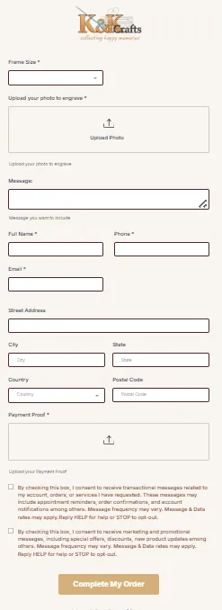 Embedded form for engraving details (names, dates, messages)